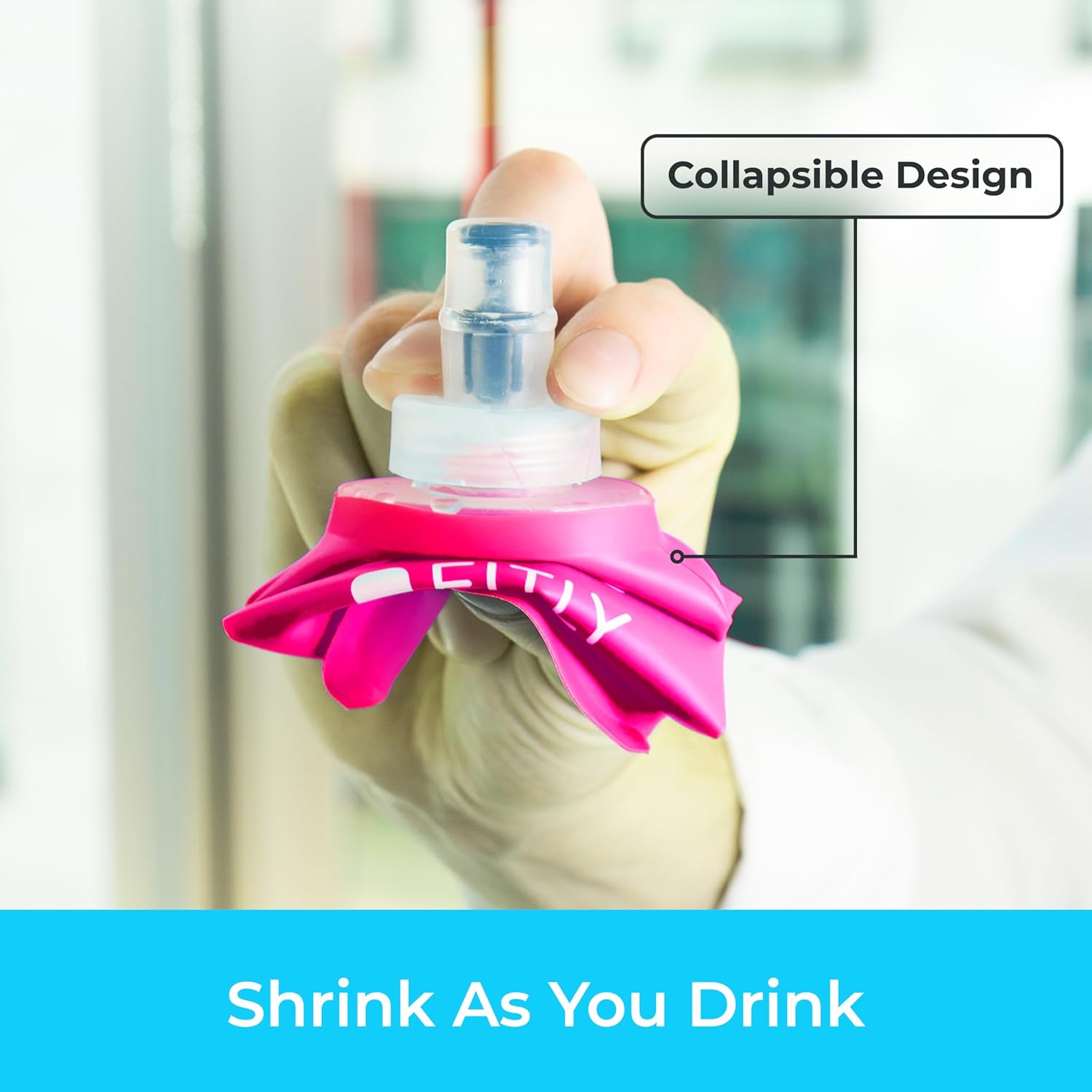 - HYDRATION ON THE MOVE: Our collapsible running soft flask is a compact and eco-friendly way to stay hydrated on the move! The soft water bottle is the perfect hydration tool for active individuals. Our soft water bottles for runners shrink as you drink, taking up minimal space and won’t slosh around, making it perfect for running, hiking, skiing, or any rigorous activity. Now available in a Pink color option.